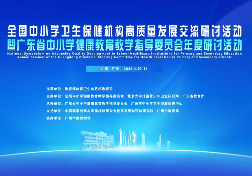 2025年4月10至11日,“全國中小學(xué)衛(wèi)生保健機構(gòu)高質(zhì)量發(fā)展交流研討活動暨廣東省中小學(xué)健康教育教學(xué)指導(dǎo)委員會年度研討活動”在廣州成功舉辦。活動由教育部體育衛(wèi)生與藝術(shù)教育司指導(dǎo),全國中小學(xué)健康教育教學(xué)